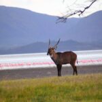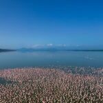 The lake is home to diverse wildlife and is especially famous for its birdlife. Thousands of flamingos and pelicans create a pink-and-white spectacle along the shoreline.